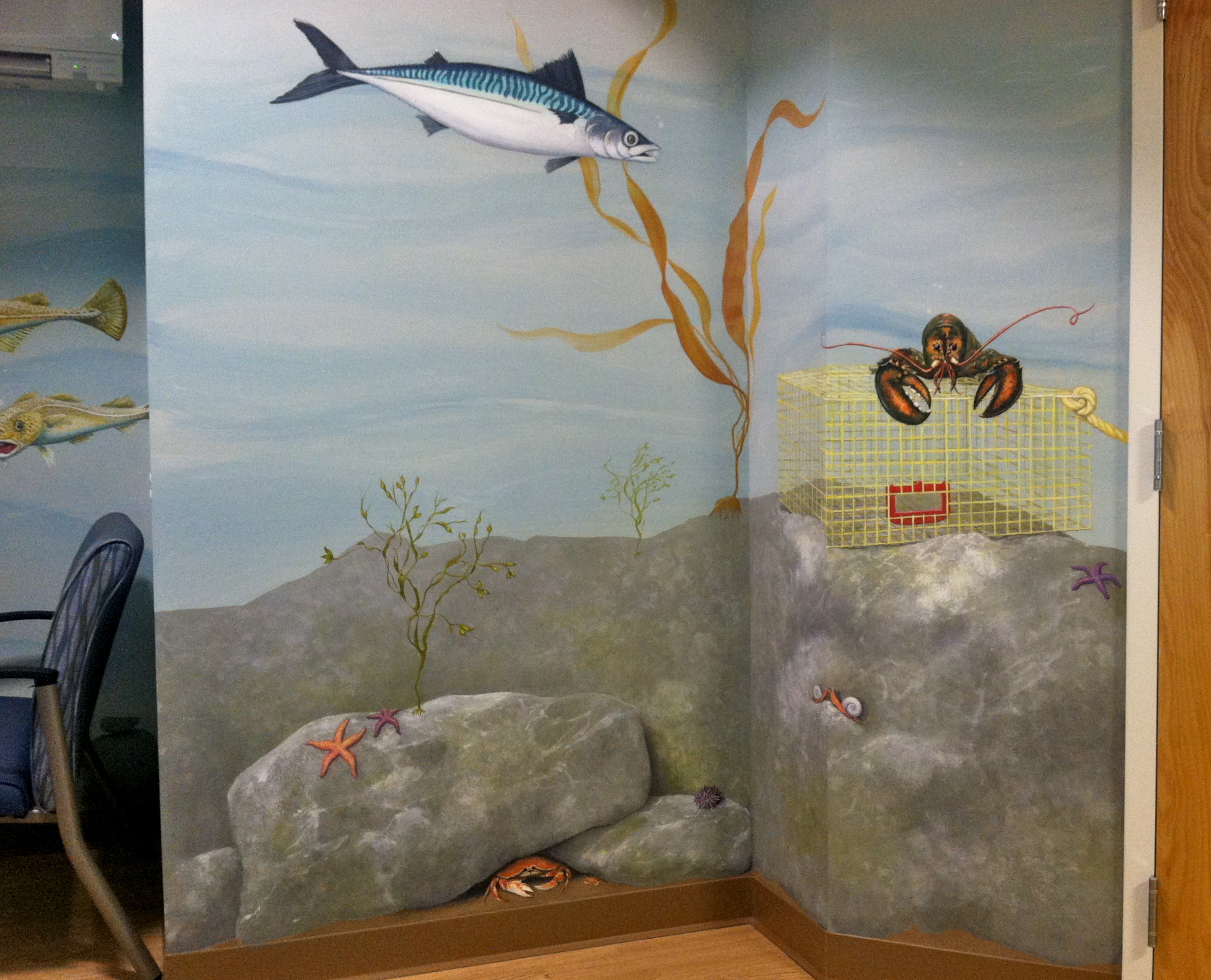Here are more photos of the painted wall mural for children at the Freeport Maine Medical Center.